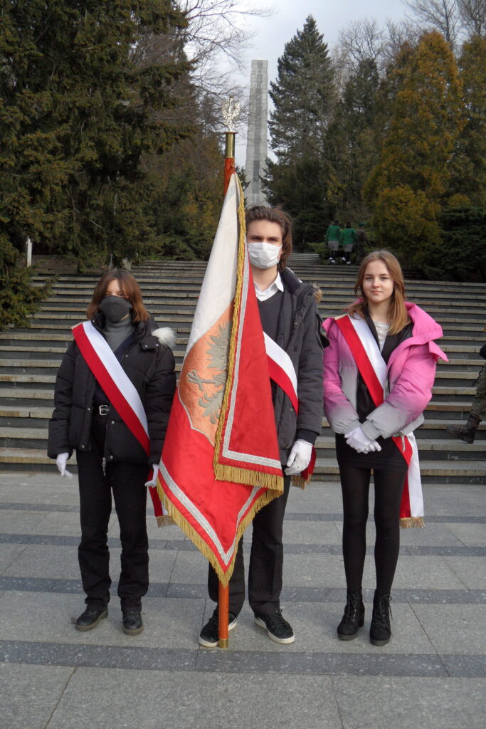 Wyjście z pocztem sztandarowym Szkoły Podstawowej nr 84 im. Tadeusza Kościuszki na miejskie obchody 80 rocznicy akcji ,,Bollwerk”
