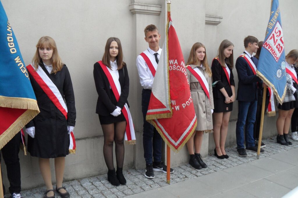 Wyjście z pocztem sztandarowym szkoły na miejskie obchody Dnia Hołdu i Pamięci Ofiar Komunizmu